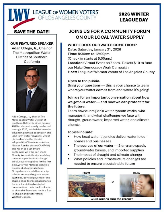 The League of Women Voters of Los Angeles County , a membership organization, is a nonprofit 501(c)(3) corporation, which does not endorse or oppose candidates or political parties, but we are political. We: